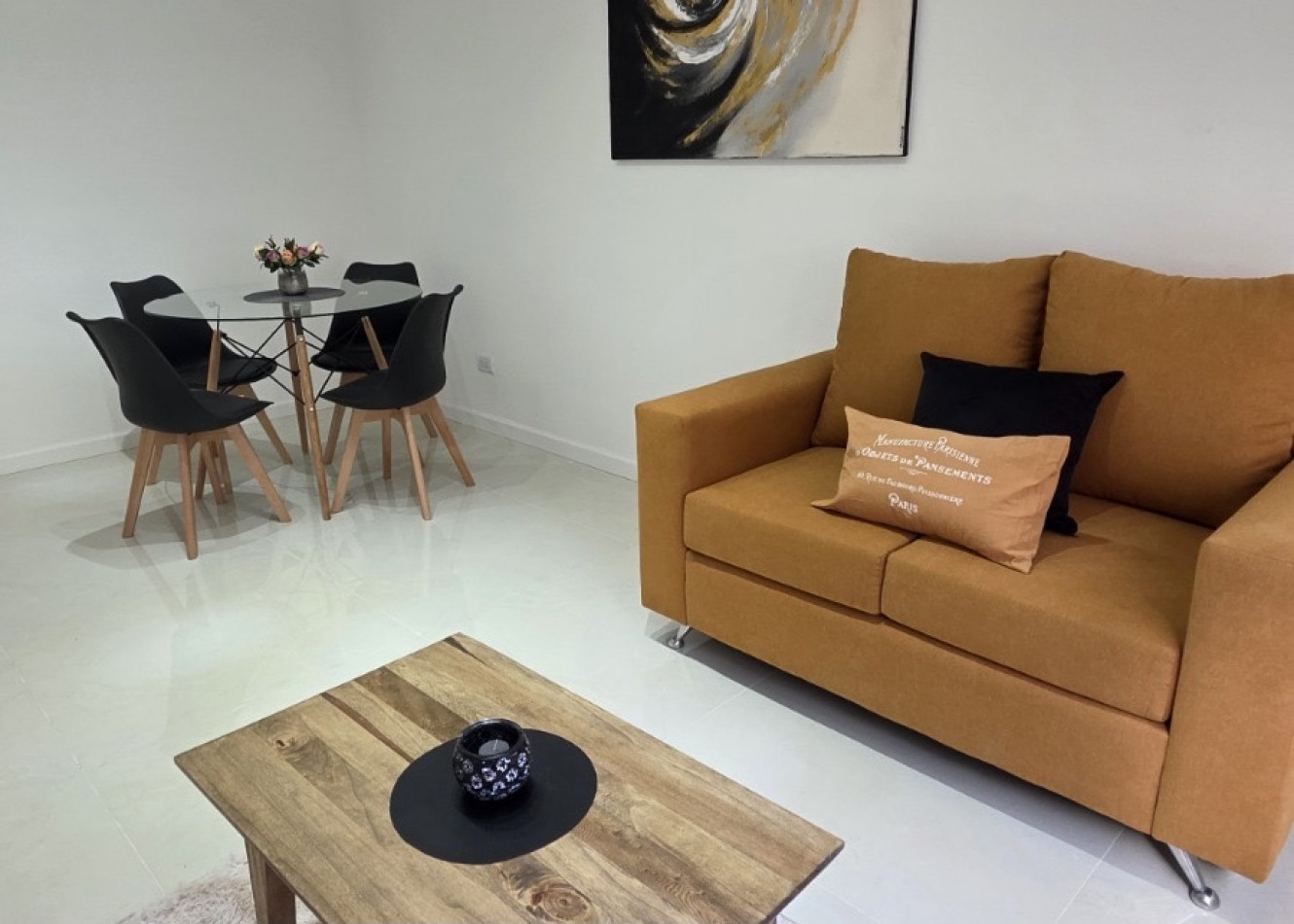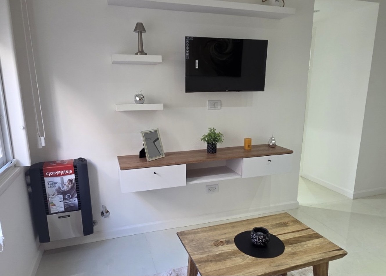 Dispone de living–comedor con amoblamiento completo, cocina totalmente equipada con lavarropas automático y heladera con freezer. Dormitorio completamente decorado y baño con espejo LED y mampara de vidrio templado. Cuenta además con sistema de calefacción.