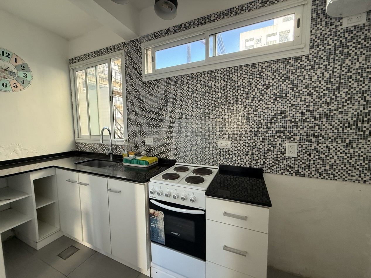 Cuenta con amplio living–comedor diario, muy soleado y con excelente ventilación natural. Cocina equipada con artefacto eléctrico de 4 hornallas con horno y termotanque eléctrico.