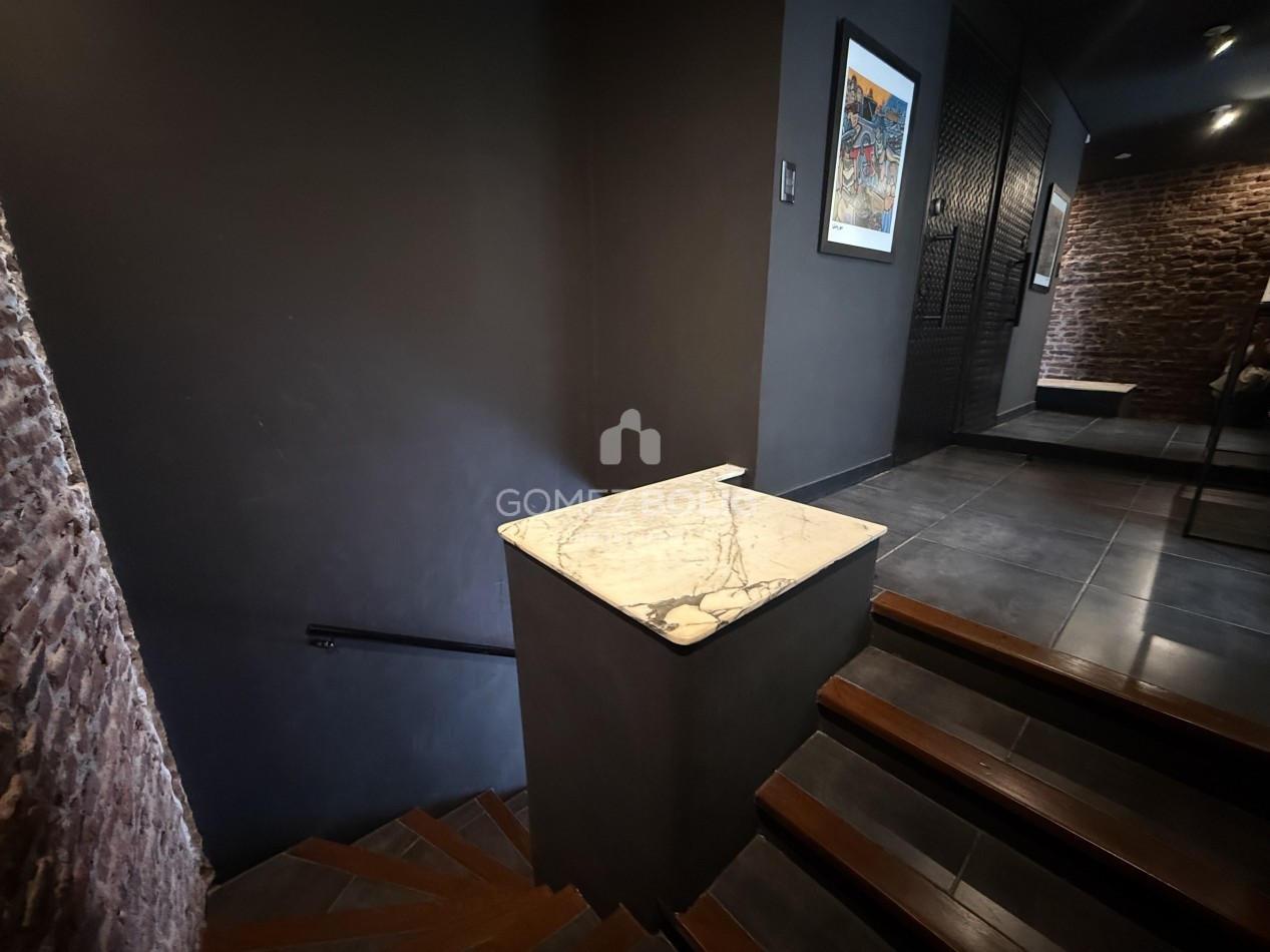 Ambientes Integrados y Modernos: Planta baja con living-comedor de diseño, cocina integrada con mobiliario de alta gama en tonos grafito y cemento, barra desayunadora y equipamiento completo (anafe, campana de acero inoxidable y electrodomésticos de primera línea).