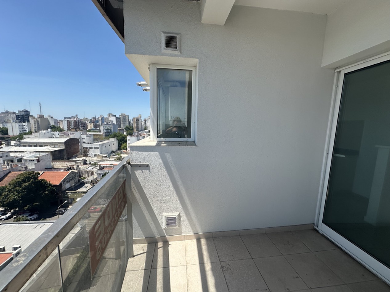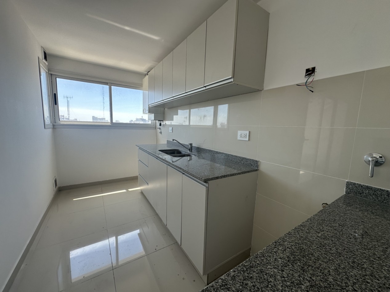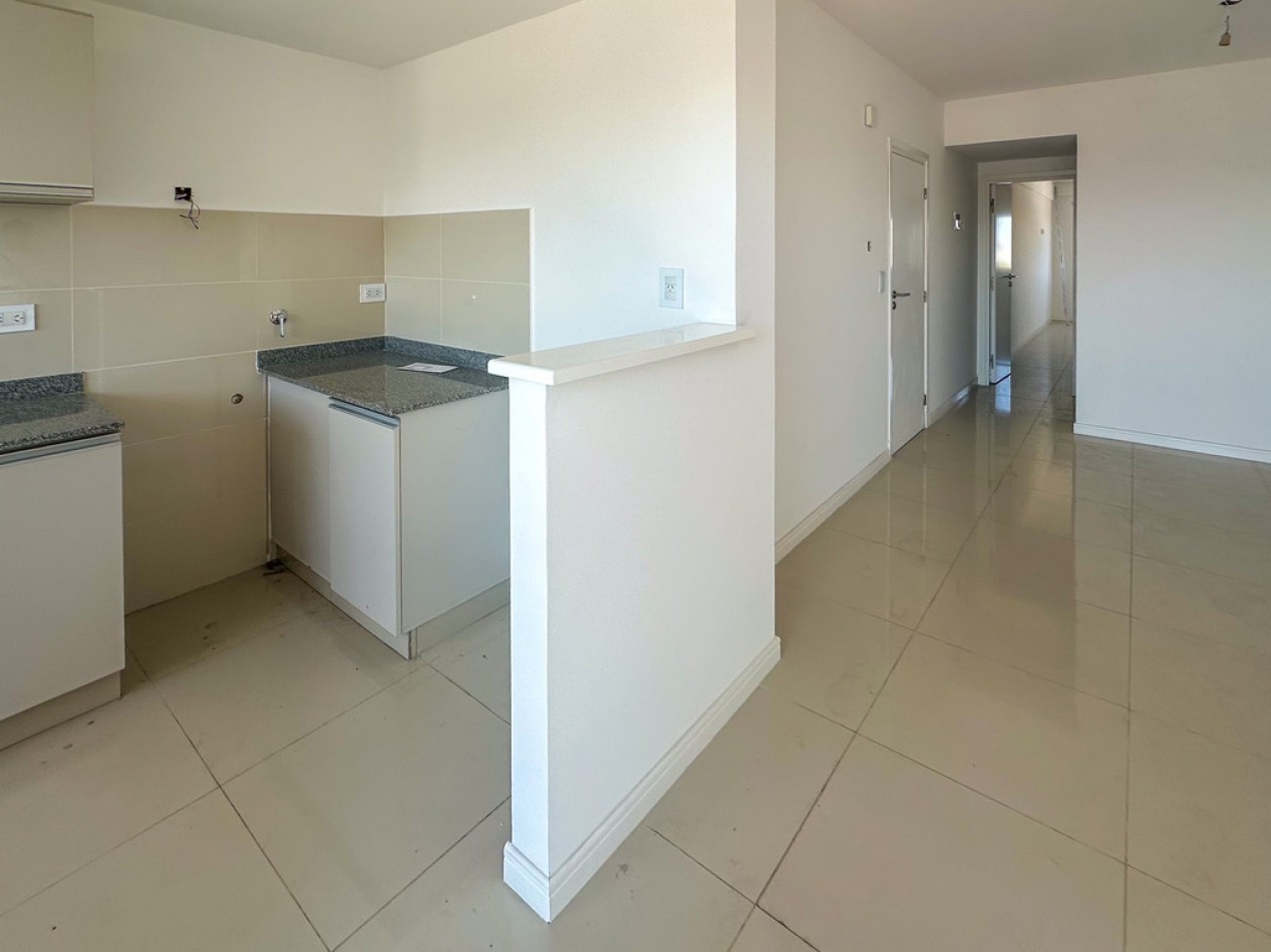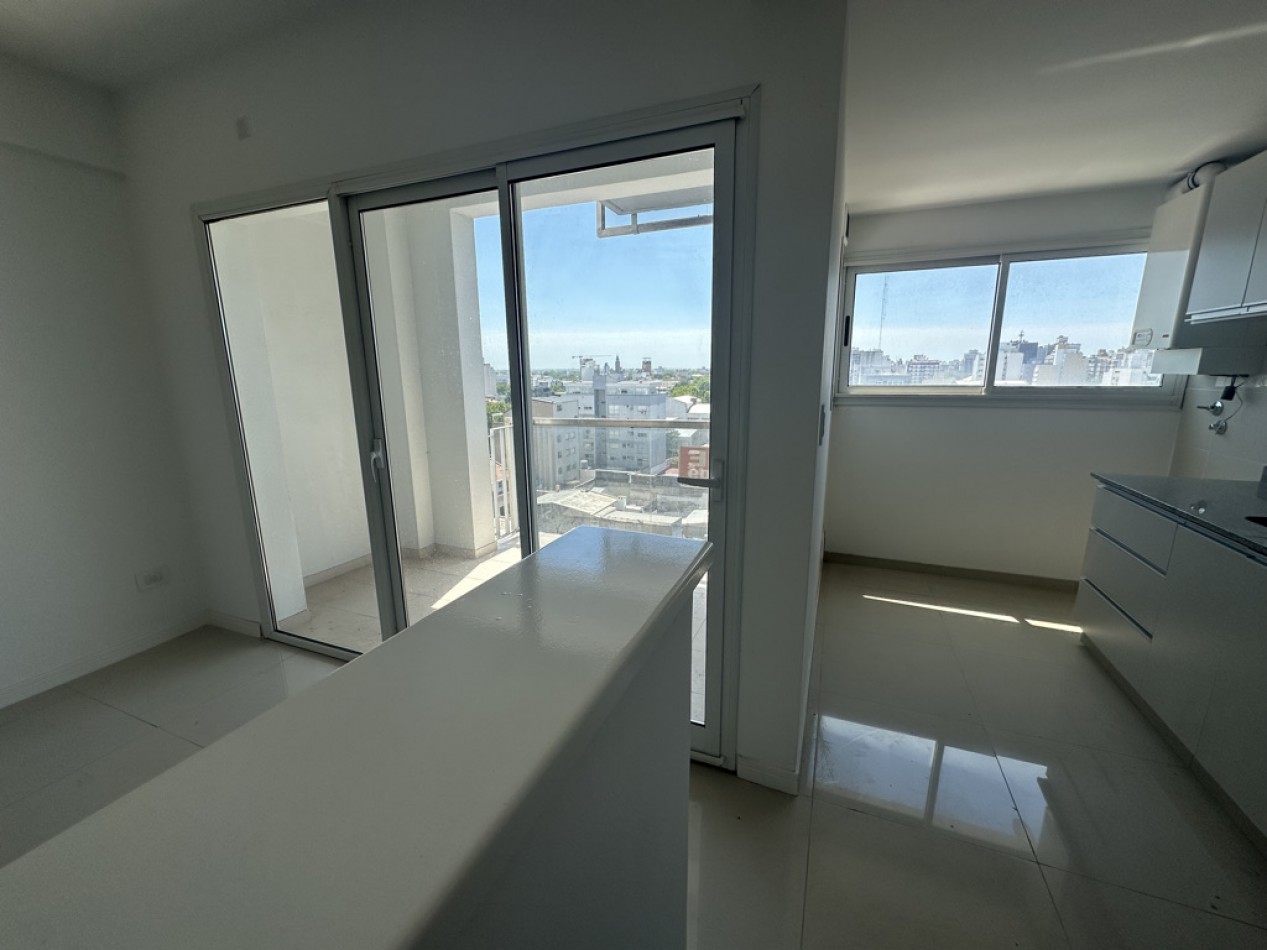 El departamento cuenta con dos ambientes bien distribuidos: dormitorio en suite y amplio living–comedor con cocina semiintegrada, con salida directa al balcón. Cocina con amoblamientos a medida. Posee dos baños, uno de ellos toilette de recepción.