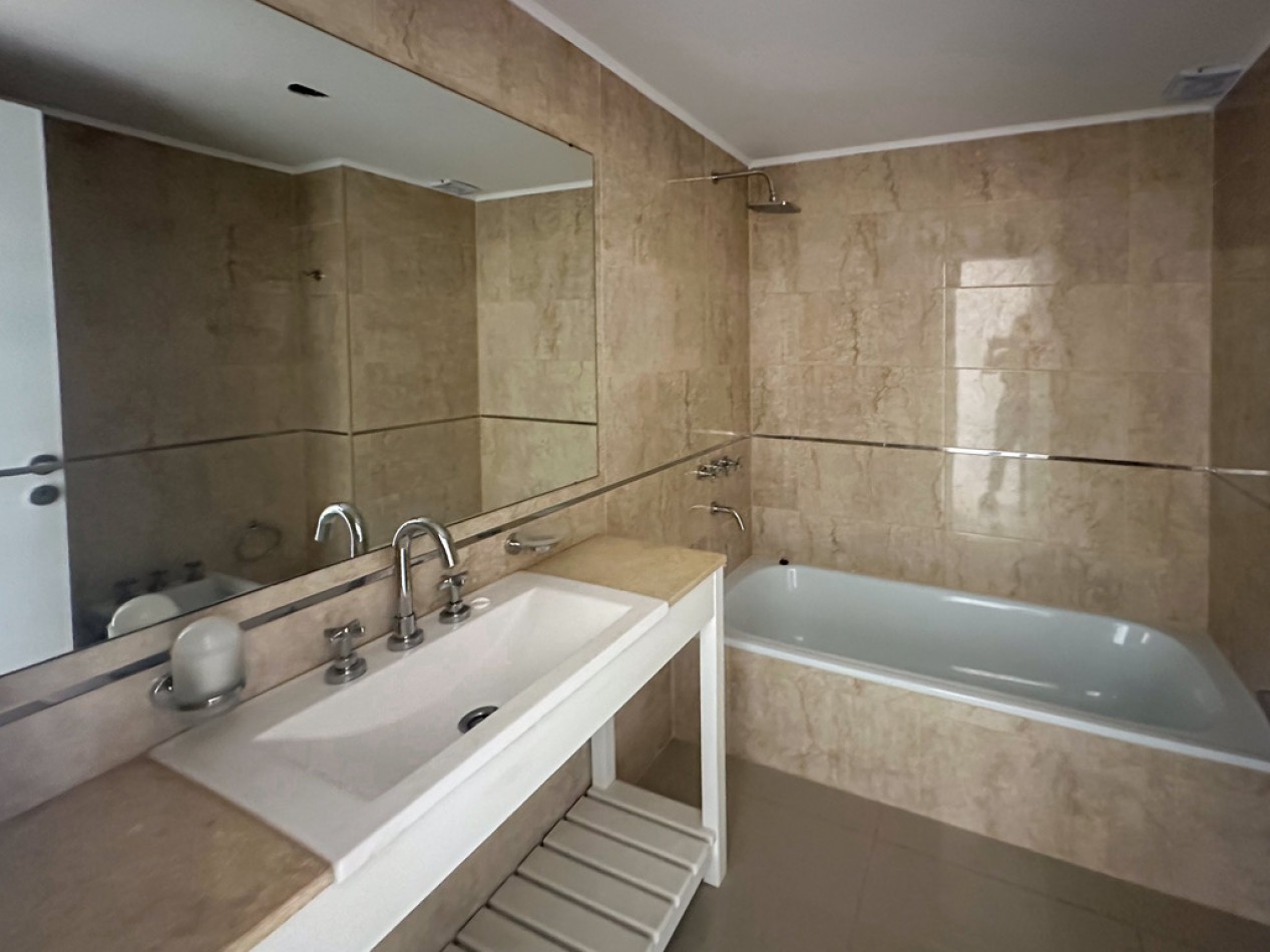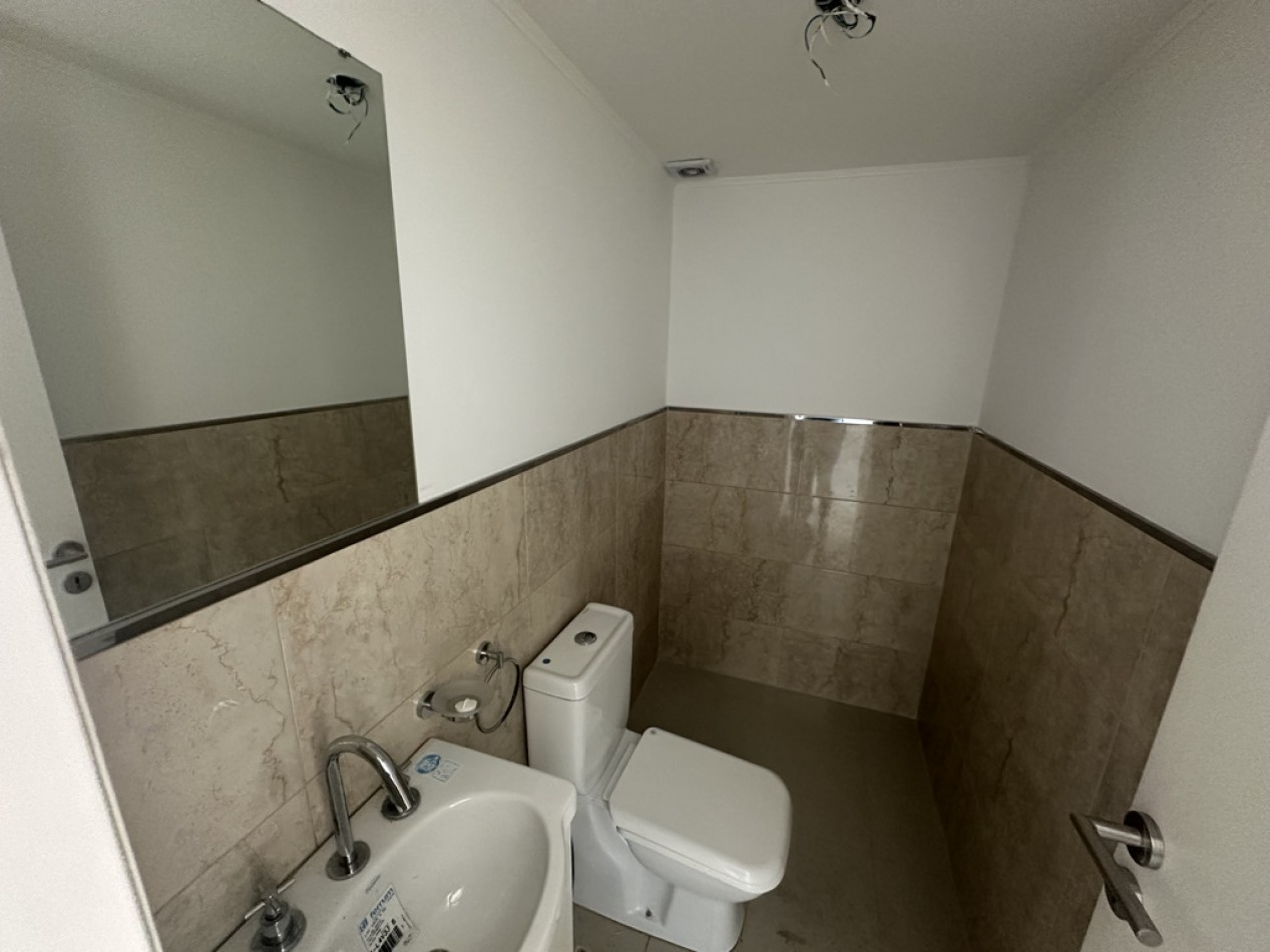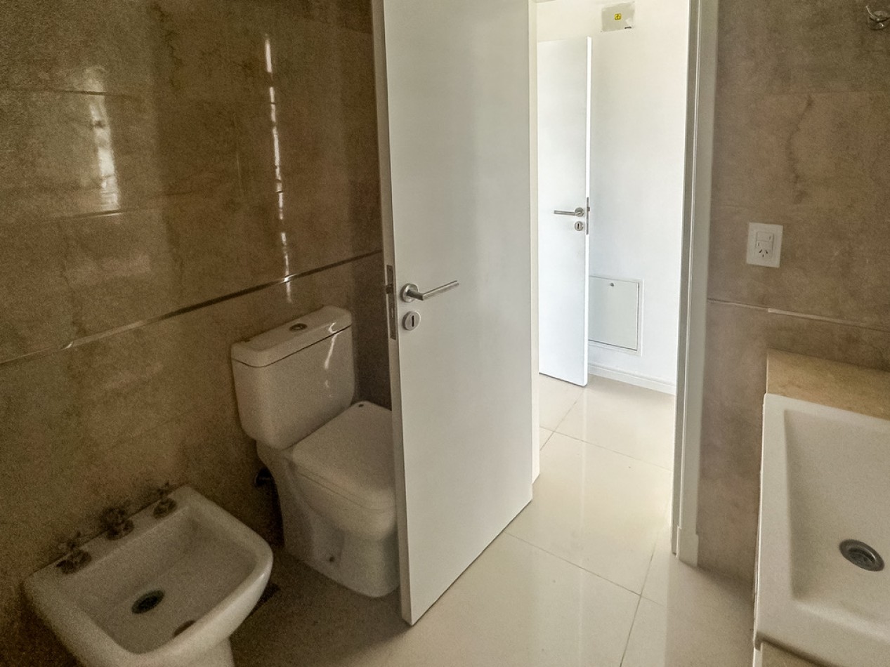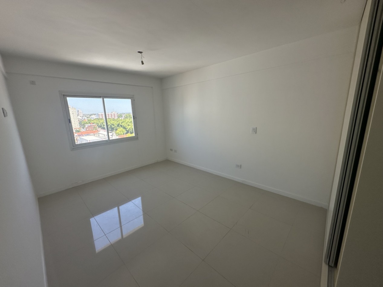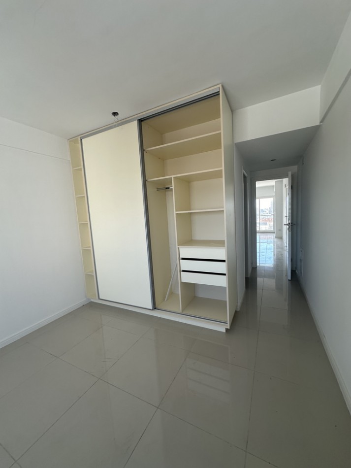 El departamento cuenta con dos ambientes bien distribuidos: dormitorio en suite y amplio living–comedor con cocina semiintegrada, con salida directa al balcón. Cocina con amoblamientos a medida. Posee dos baños, uno de ellos toilette de recepción.