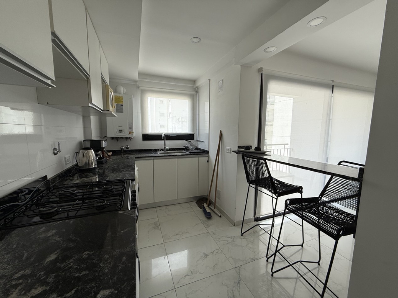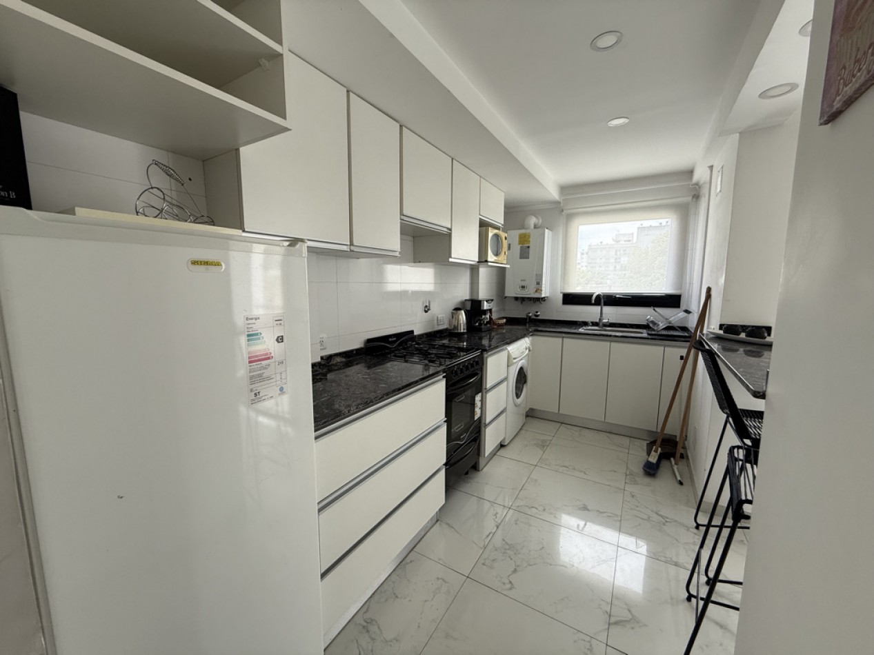 • Cocina semiintegrada con barra desayunadora, amoblamientos a medida, ventilación natural, espacio para lavarropas y cocina a gas.