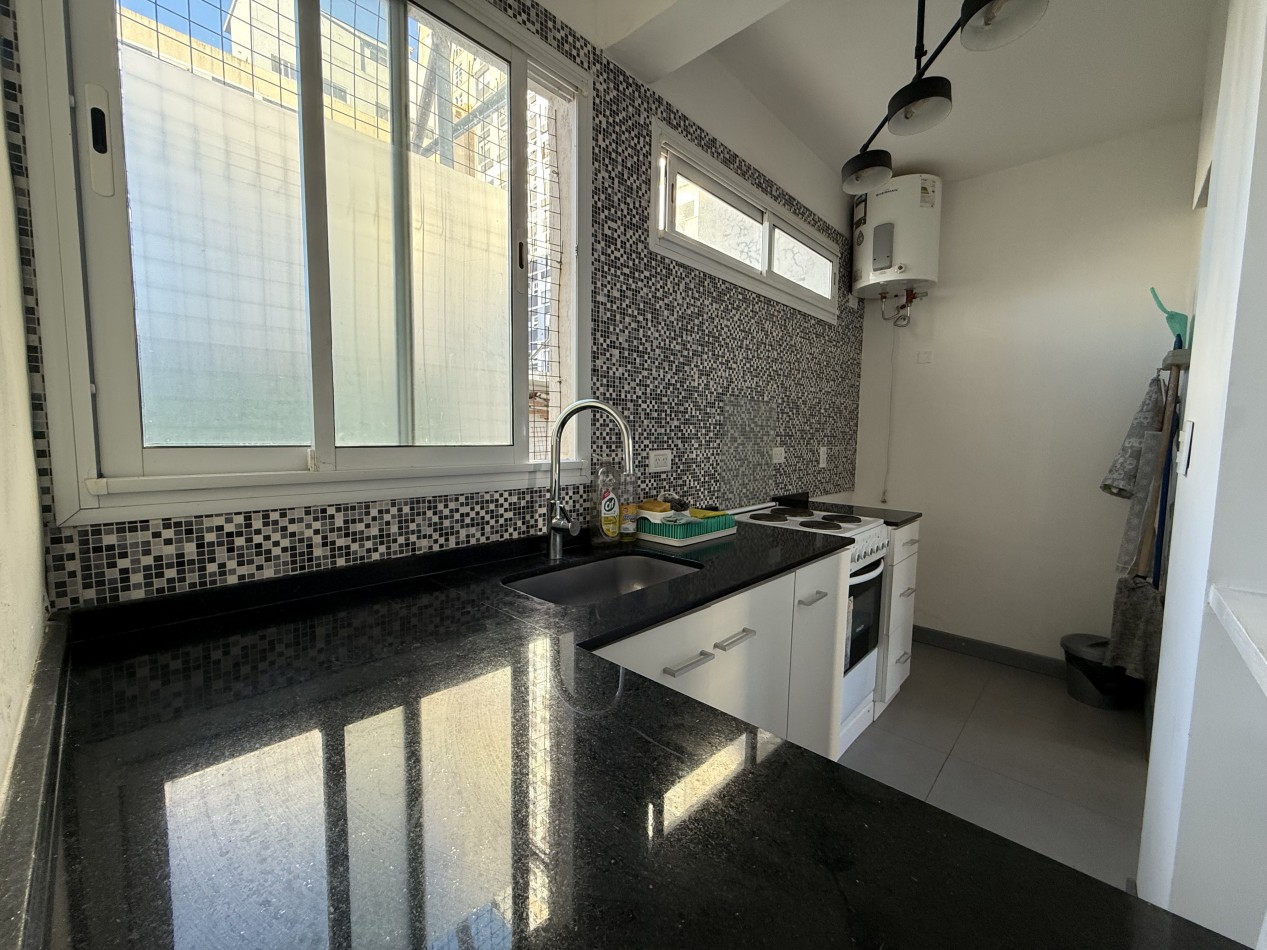 Cuenta con amplio living–comedor diario, muy soleado y con excelente ventilación natural. Cocina equipada con artefacto eléctrico de 4 hornallas con horno y termotanque eléctrico.