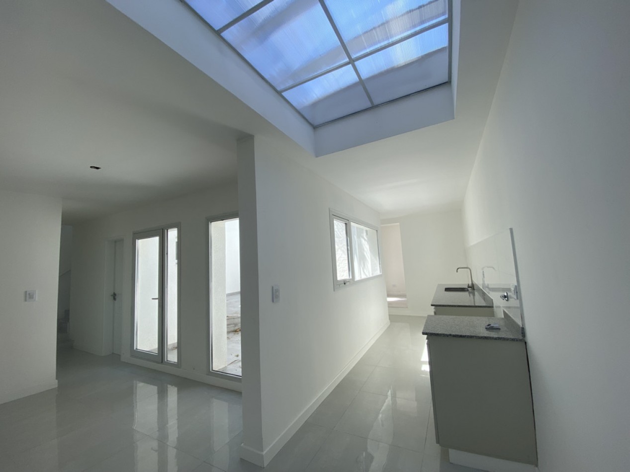 Desarrollada en dos plantas. En PB ofrece un amplio living–comedor muy luminoso, cocina integrada con ventilación natural y salida al lavadero, toilette de recepción y cochera con portón eléctrico.
