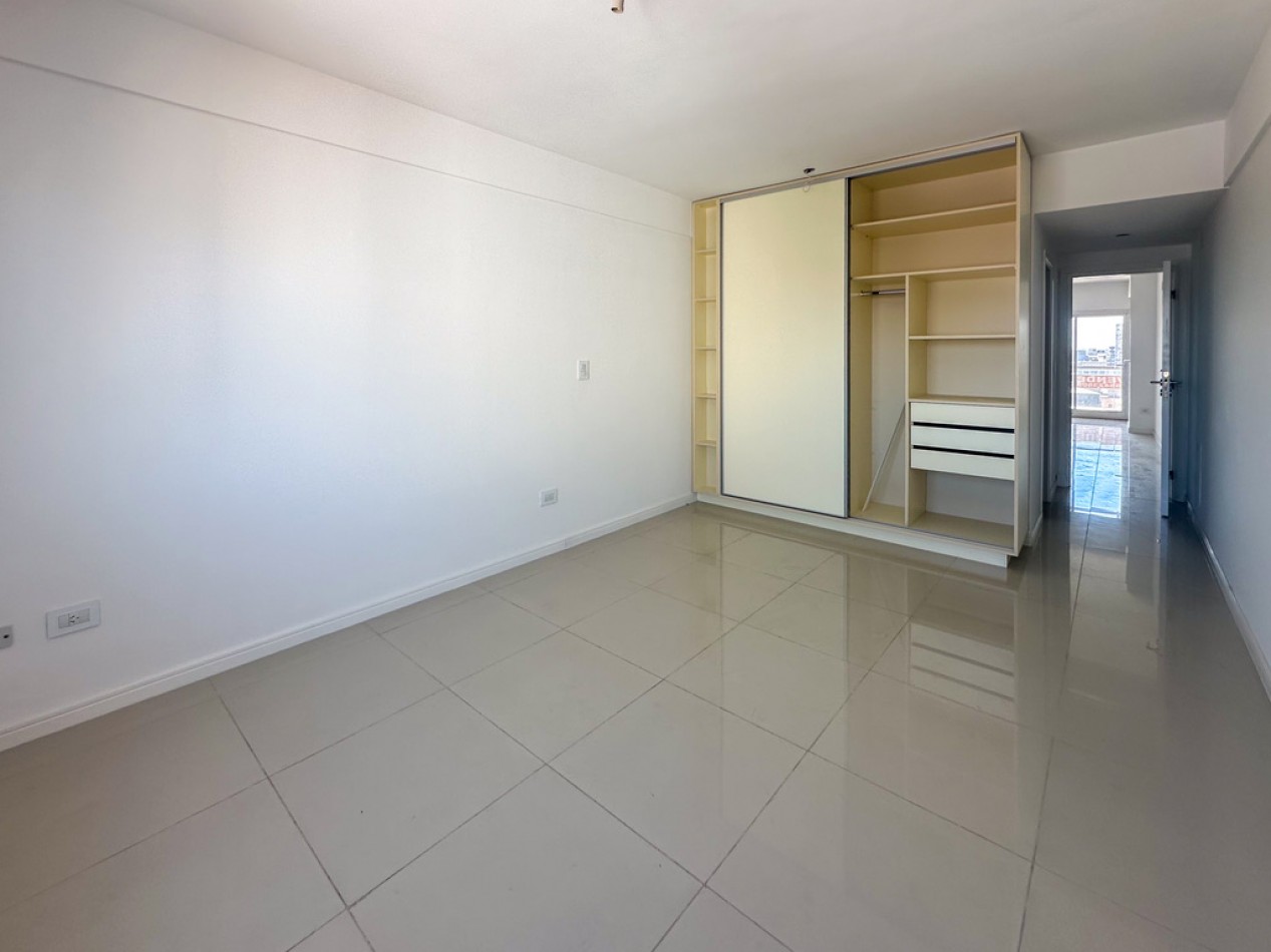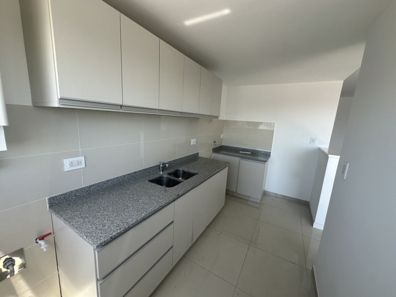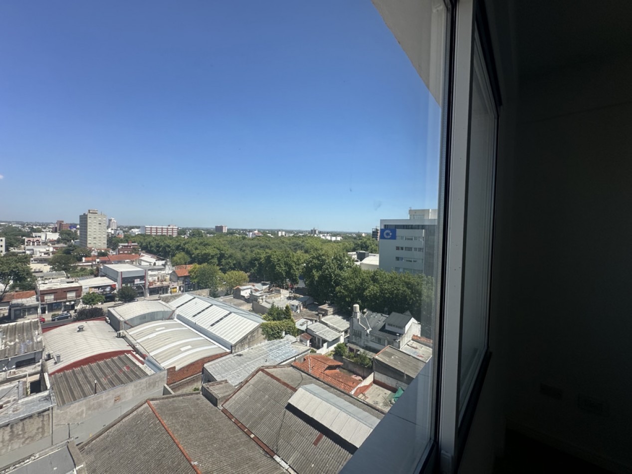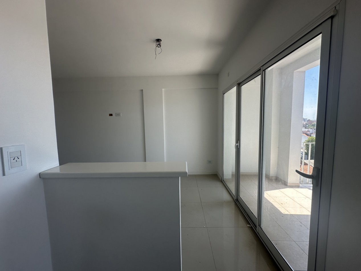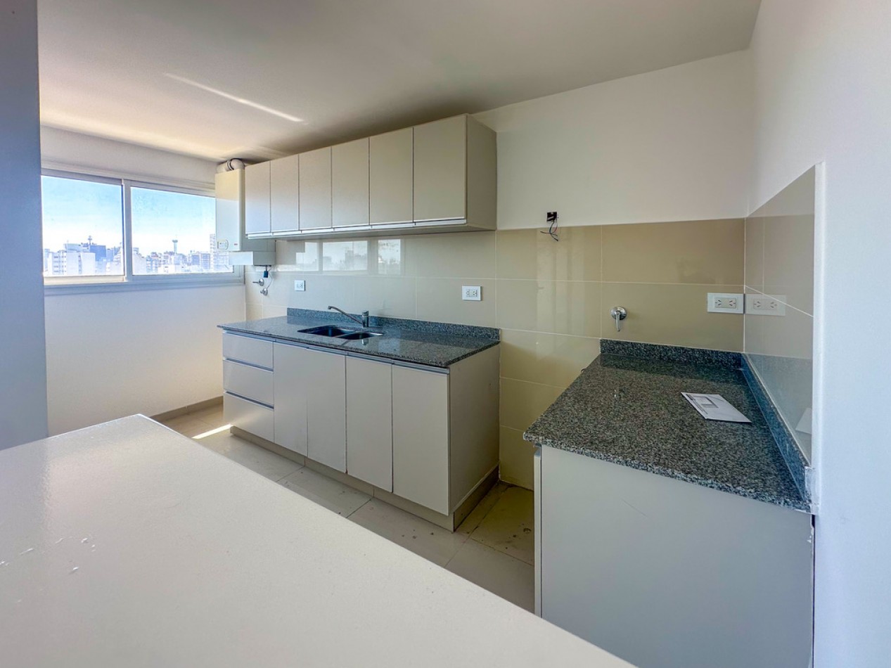 El departamento cuenta con dos ambientes bien distribuidos: dormitorio en suite y amplio living–comedor con cocina semiintegrada, con salida directa al balcón. Cocina con amoblamientos a medida. Posee dos baños, uno de ellos toilette de recepción.